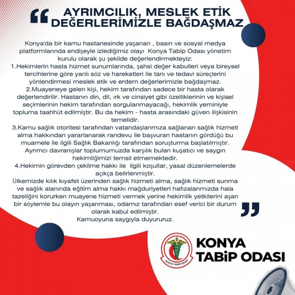 TTB'nin Tutumu Kabul EdilemezTÜRK HEKİMLERİ BİRLİĞİKAMUOYUNA VE HEKİM CAMİASINA DUYURUTürk Tabipleri Birliği’nin varlık nedeni; hekimlerin özlük haklarını savunmak, sağlık sistemindeki yapısal sorunlara çözüm üretmek, halk sağlığını ve hekimlik onuru..